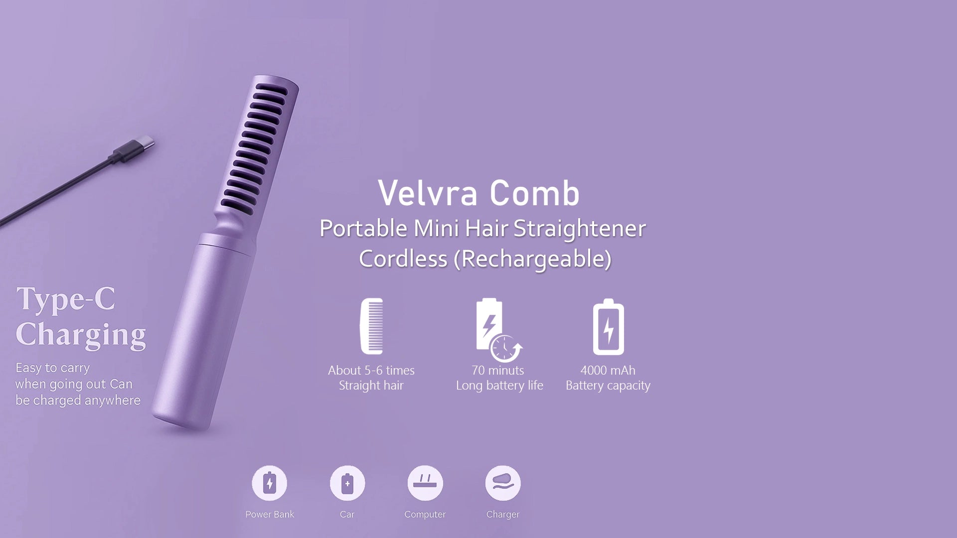 Portable Hair Straightener Cordless Rechargeable Hot Comb